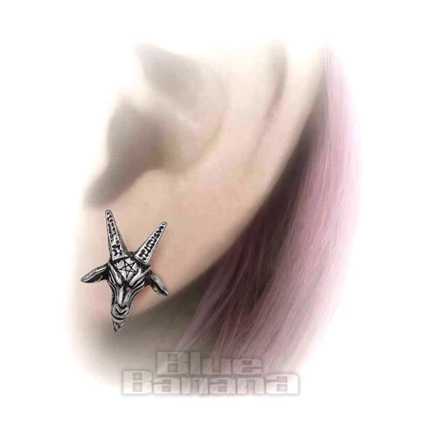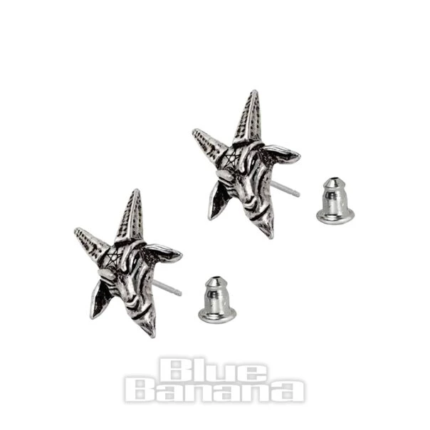 Alchemy Gothic Baphomet Stud Earrings (Silver)