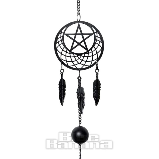 Alchemy Gothic Dreamcatcher Hanging Decoration in Black. This 83cm homeware decoration is a perfect addition to any gothic abode, although it can be used both indoors and out. Perfect as not only a hanging decoration but could also be used as a wind chime. This could be a perfect gift for any fans of gothic, dark or witchy fashion.