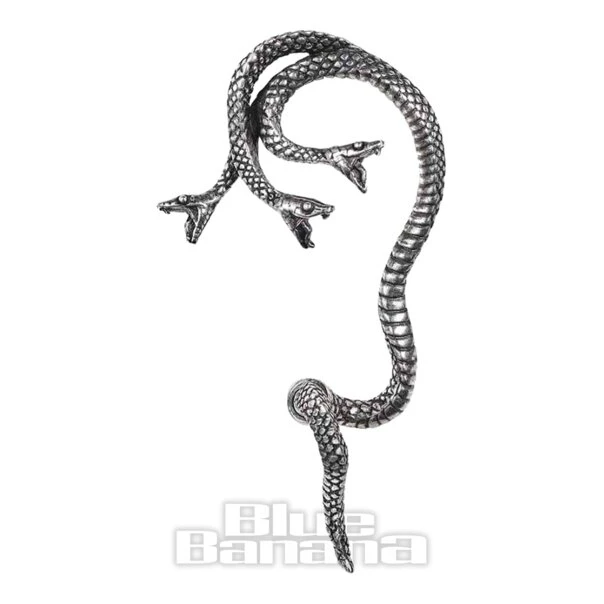 Alchemy Gothic Khthonis Ear Wrap in Silver. This unique gothic ear jewellery is designed to pay homage snakes and serpents. Become a full Medusa by adding this reptilian jewellery to your look. Made from high quality surgical steel. Perfect as a gift for those in love with alternative fashion and interesting jewellery accessories.