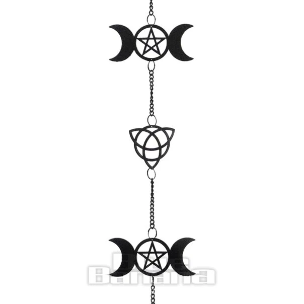 Alchemy Gothic Triple Moon Hanging Decoration in Black. This 83cm homeware decoration is a perfect addition to any gothic abode, although it can be used both indoors and out. Perfect as not only a hanging decoration but could also be used as a wind chime. This could be a perfect gift for any fans of gothic, dark or witchy fashion.