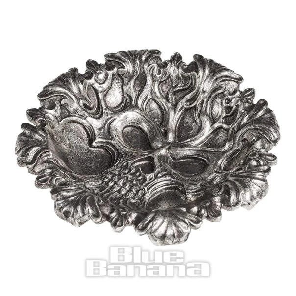 The Alchemy Tree Of Death Bowl in Silver. The bowl is designed with a skull face and tree effect design. Ideal for those in love with everything dark, gothic and fantastical. The resin ornate dish makes for a perfect centrepiece or home accessory. Ideal as a gift for someone special or as a treat for those obsessed with darkly goods and trinkets.