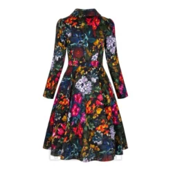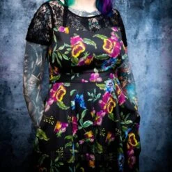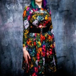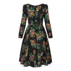 Bleeding Heart Floral Long Sleeve Black Dress (Multicoloured)