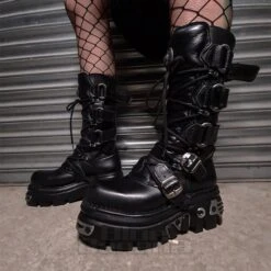 New Rock M.NEWMILI118-S1 Mili Embroidered Half Boots (Black)