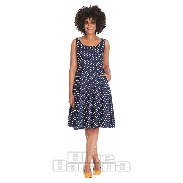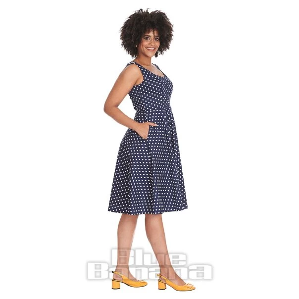 Banned Polka Dot Swing Day Dress (Navy)