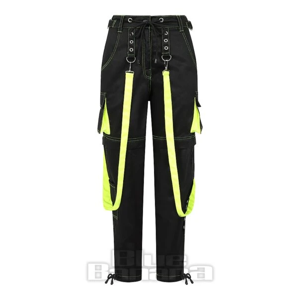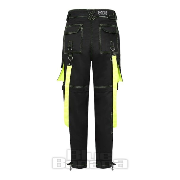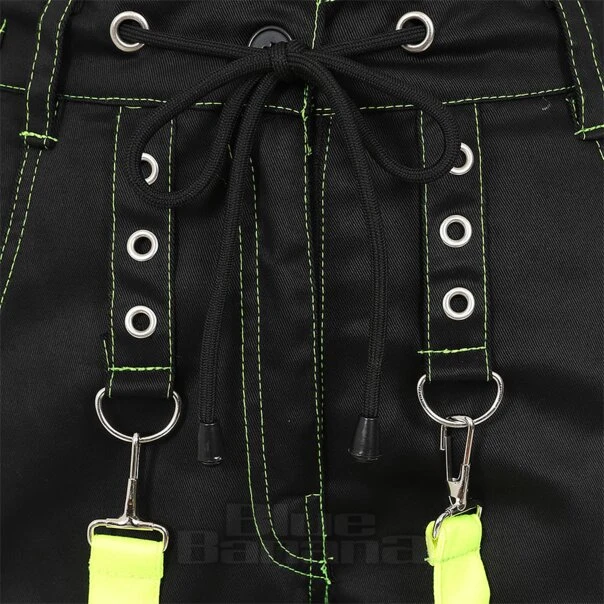 Unlock your inner grunge self with these Banned Green Strap Trousers. Baggy and badass, these trousers are a perfect fit for any alternative fashion wardrobe. Available here with bright green straps.