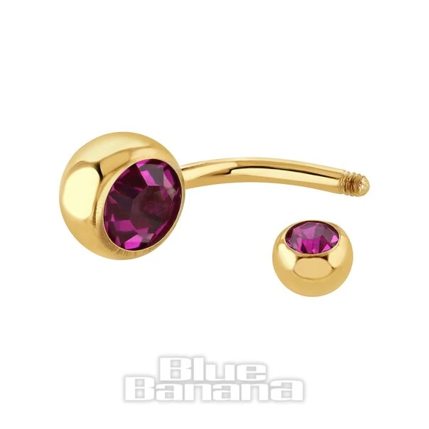 Blue Banana Coloured Titanium 1.6mm Double Jewelled Navel Bar (Fuchsia)