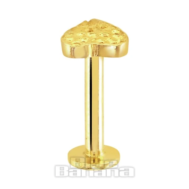 Blue Banana Hammered Heart 9 ct Gold 1.2 x 6mm/8mm Labret (Gold) is a dainty design, perfect for helix piercings. This beautiful gold labret stud can be used in a range of healed piercings including ear cartilage.