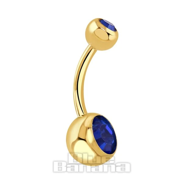 Blue Banana Plasma Gold 1.6mm Double Jewelled Navel Bar (Capri)
