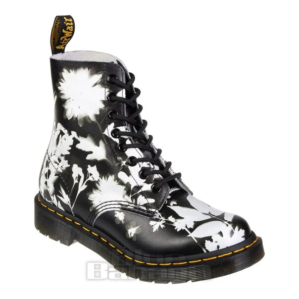 The Dr Martens 1460 Phantom Flower Boots in Black White. Available in sizes UK 4 to UK 7.