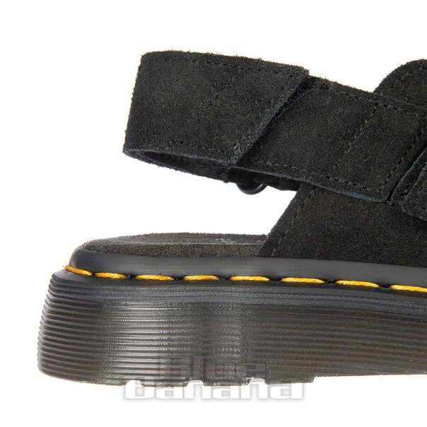 The Dr Martens Jorge II E.H Suede Mule Shoes in Black. Available in sizes UK 3 to UK 7. These bold DM sandals feature a premium mule design, black colour pigment and luxurious jorge suede.