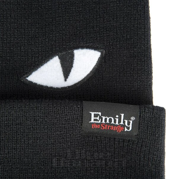 Cute meets emo with this Emily The Strange Beanie! Embody one of Emily’s cat sidekicks with this cat ear beanie hat with cat eye details.