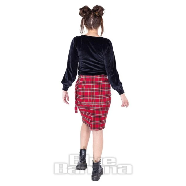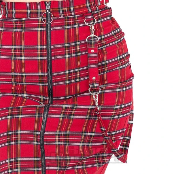This alternative pencil skirt is all about attitude! With a bright tartan print and detachable strap, you can pair this punk skirt with a band tee for a complete look.
