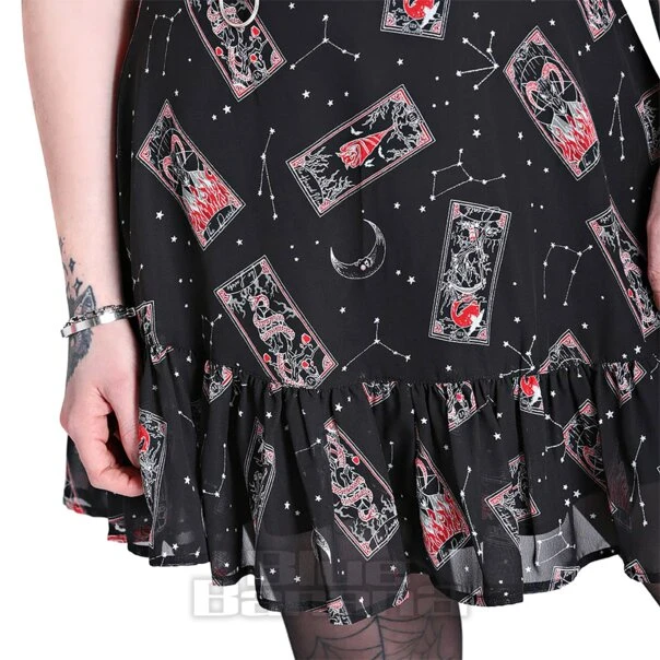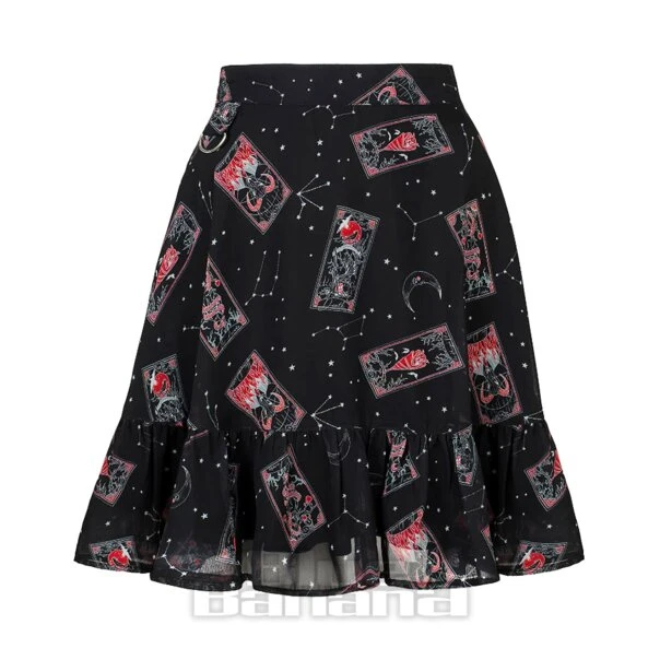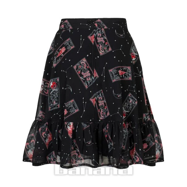 Transform your look with the Hell Bunny Duality Chiffon Skirt. The tarot card design brings the alternative edge and makes for a fun new look.