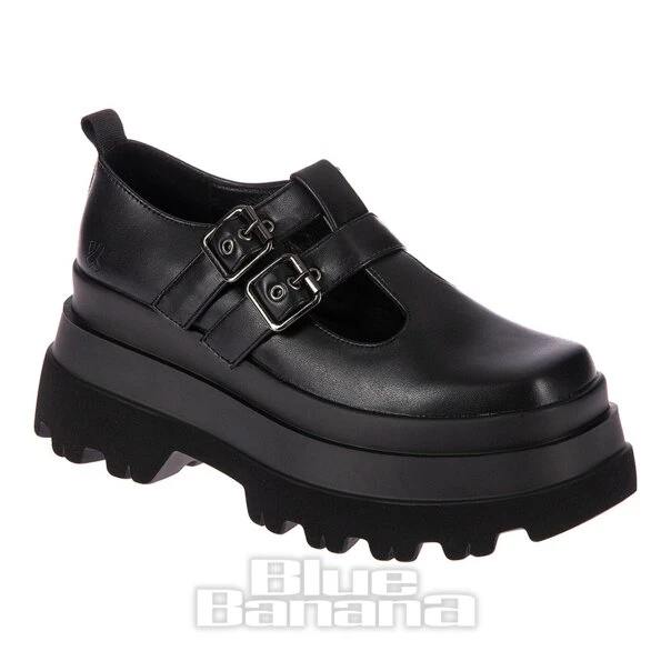 These versatile shoes from Koi pair easily with trouser, skirts or dresses for a complete gothic ensemble! With a platfrom sole and double buckles, these shoes are 100% vegan.