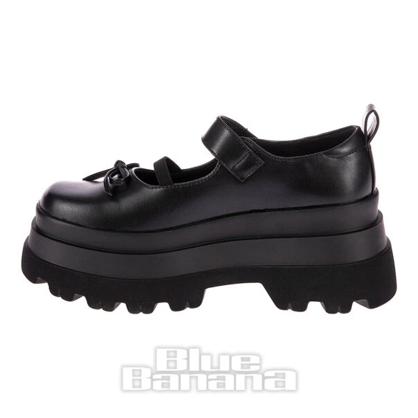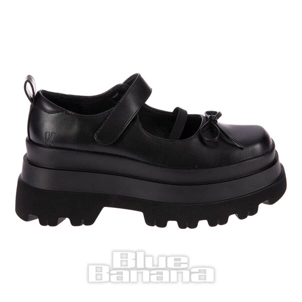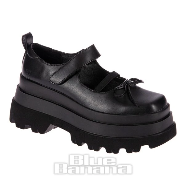 These versatile shoes from Koi pair easily with trousers, skirts or dresses for a truly alternative look. Complete with a velcro strap and bow, these platform shoes are 100% vegan.
