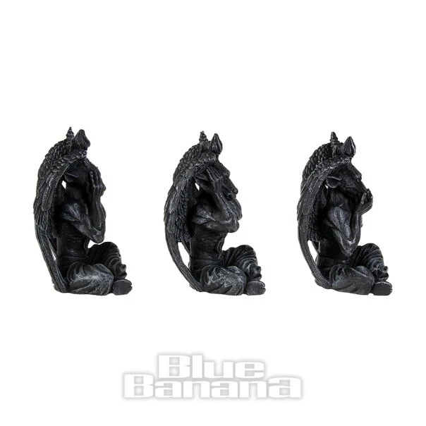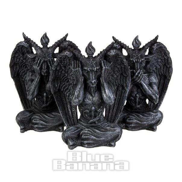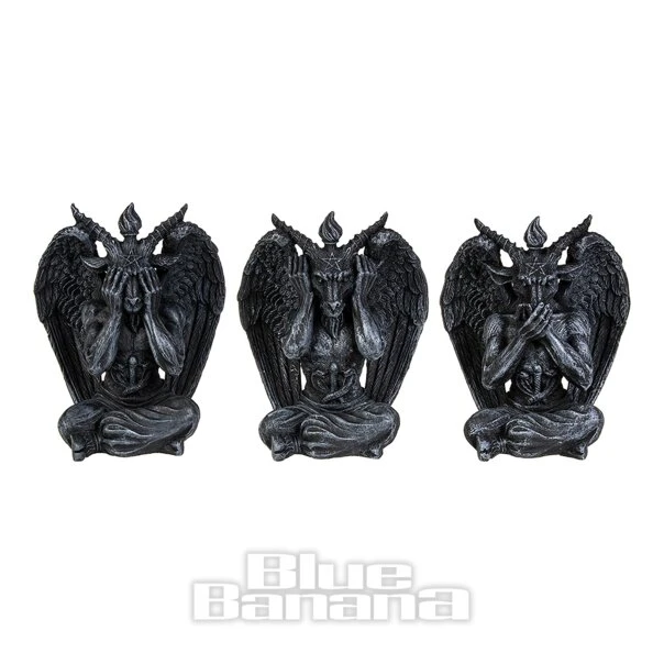The 3 Wise Baphomet Figurine from Nemesis Now. Available in 10.2 CM. This gothic ornament features 3 gothic Baphomet Figures in the “Hear No Evil, See No Evil, Speak No Evil” Proverb. Add this occult ornament to your home for a touch of macabre.