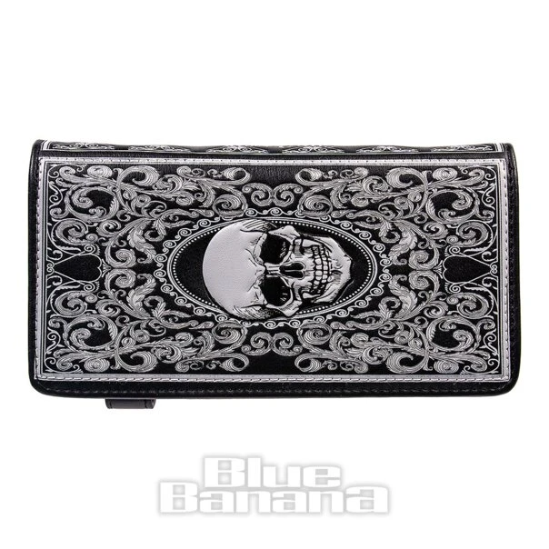 The Nemesis Now Skull Tarot Purse in 18.5cm. This gorgeous Gothic purse features a skull design to the front with ornate detailing. The clasp fastening and zipped pockets will help you securely store everything you need.