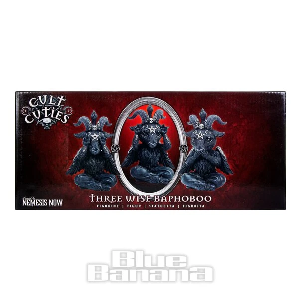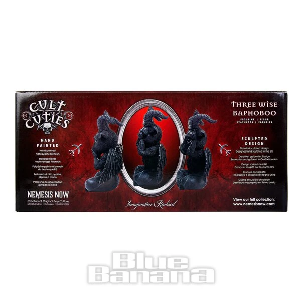 The Nemesis Now Three Wise Baphoboo Figurines in 13.4cm. This trio of ornaments features Baphomet, the goat deity in the classic See No Evil, Hear No Evil, Speak No Evil poses. A perfect gift for a fan of alternative Gothic home decor.