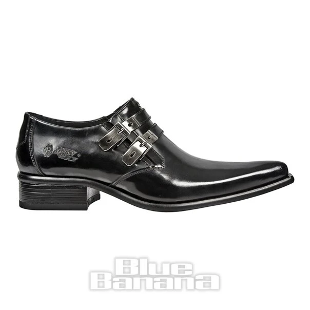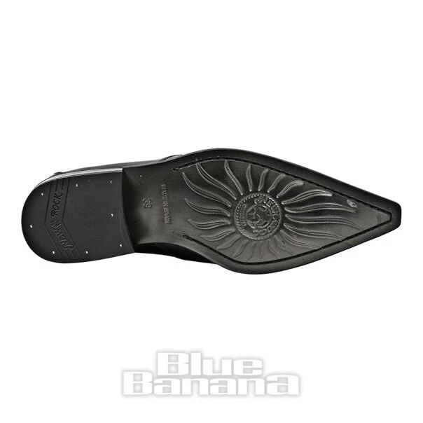 The New Rock M.2246-S20 Newman Shoes in black feature a smooth patent leather in a classic pointed-toe design. This sophisticated shoe still has hints of New Rock’s alternative design but in a finish that is meant for business.