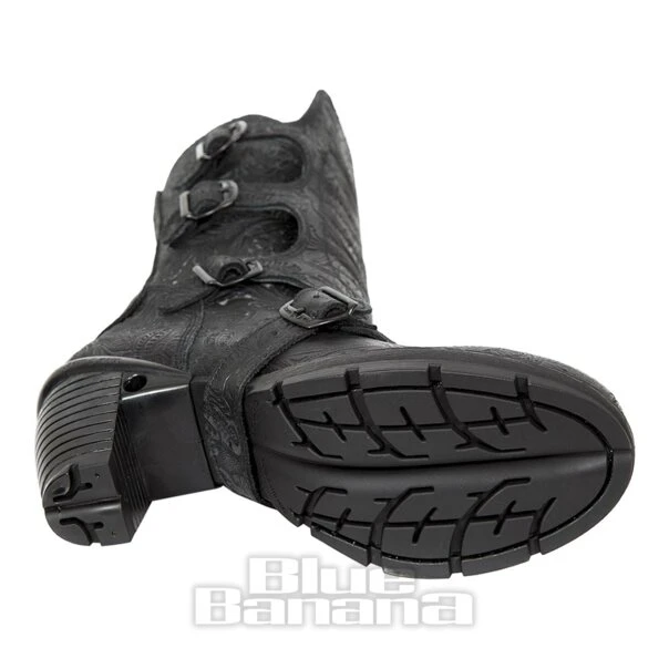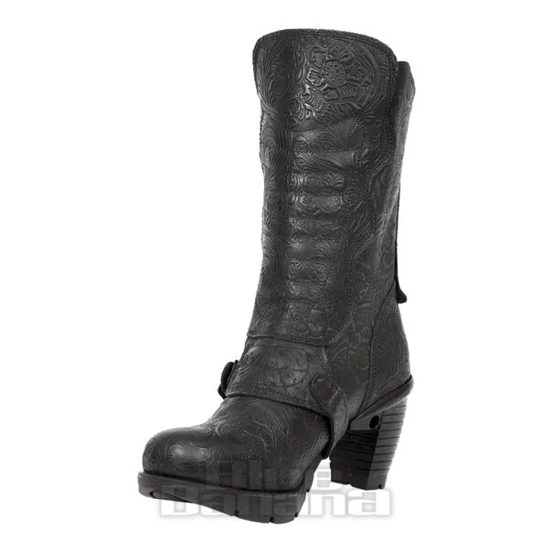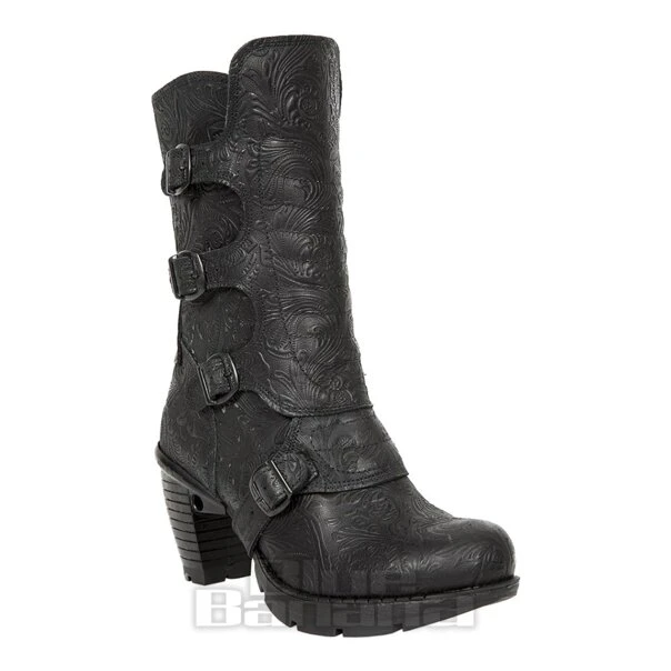 New Rock M.TR003X-S3 Trail Vintage Flower Heeled Boots (Black)