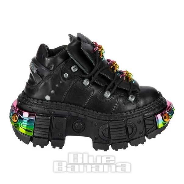 Enjoy a mashup of styles with the New Rock WALL106 platform shoes. Complete with multicoloured metal rivet accents and a chunky platform sole, these shoes are totally standout!