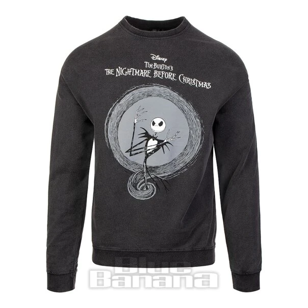 Nightmare Before Christmas Jack Skellington Acid Wash Sweatshirt (Grey)
