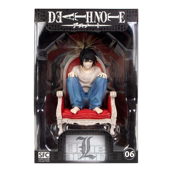 The L Figurine from Official Death Note. Available in 15CM. This anime ornament features Death Note character L sat on a large armchair. This anime figure would make a great addition to any Death Note collection.