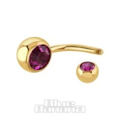 Blue Banana Coloured Titanium 1.6mm Double Jewelled Navel Bar (Fuchsia)