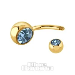 Blue Banana Plasma Gold 1.6mm Double Jewelled Navel Bar (Crystal)