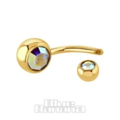 Blue Banana Plasma Gold 1.6mm Double Jewelled Navel Bar (Aurora Borealis)